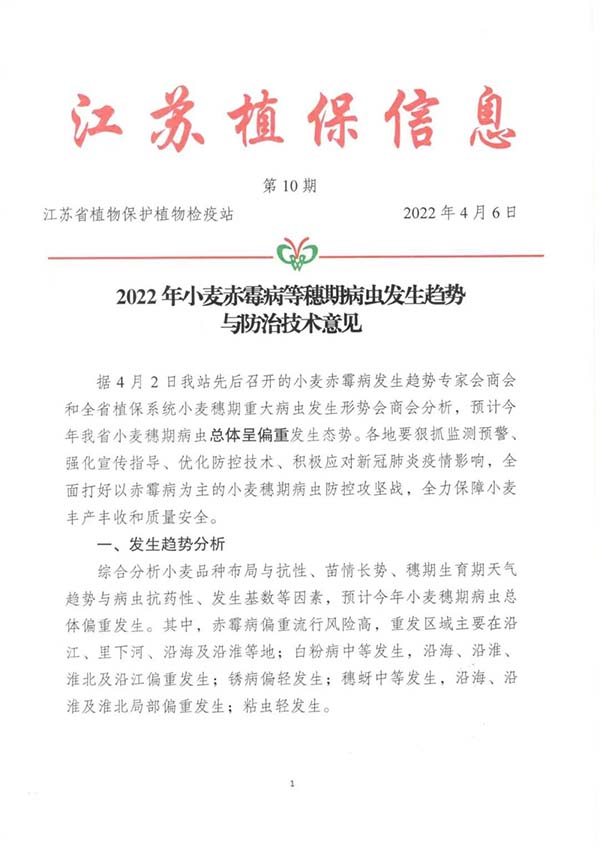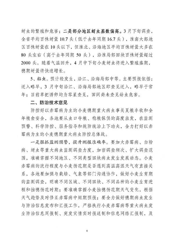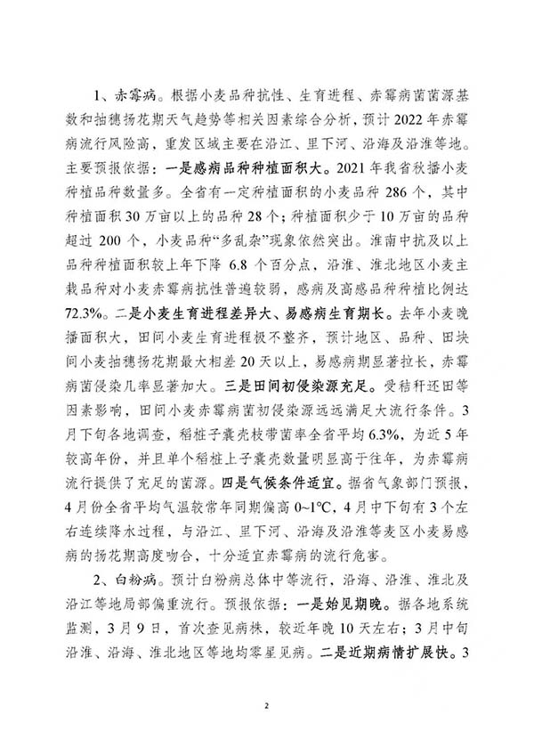 2022年小麥赤黴病等穗期病蟲發生趨勢與防治技術意見