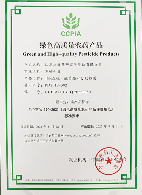 蘇研千尊®榮獲綠色高質量農(nong) 藥產(chan) 品